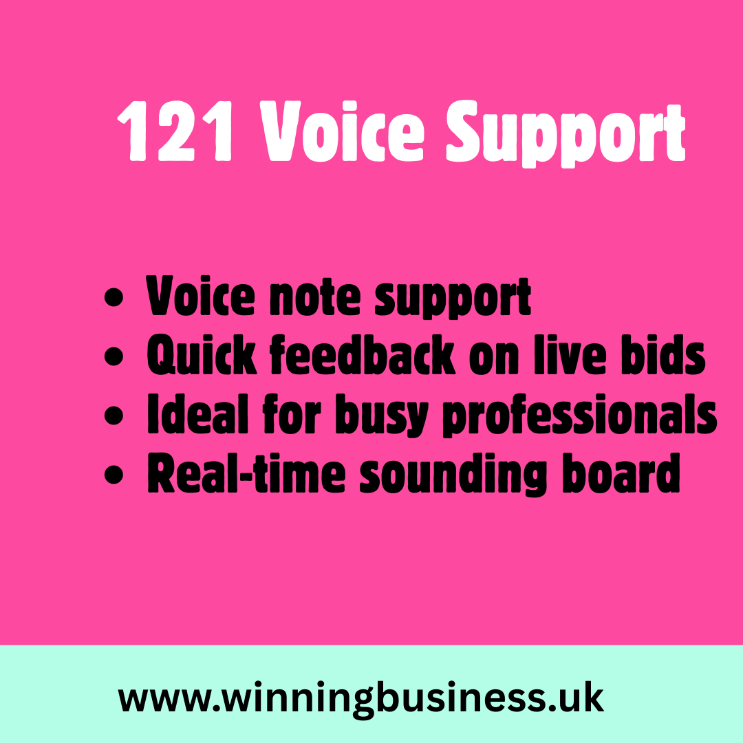 I can provide strategic feedback, challenge positioning, help refine messaging, and offer guidance on structure or approach. The aim isn’t to rewrite your submission, but to help you strengthen it and improve your decision-making so you can apply those skills in future bids.
